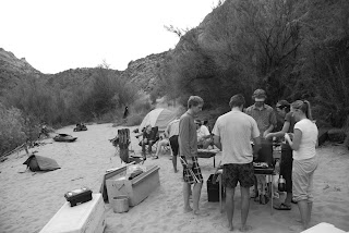 Cooking a little chow. The boys had cheesy shells and Tiff and I had some chicken and rice. I can't think of a more wonderful spot to be eating my dinner.